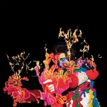 The album was re-released in June 2009 in expanded versions, under the name Voltaïc. There were five separate versions of related material from Volta. The full version included a CD of 11 songs performed live at the Olympic Studios, a DVD of live performances in Paris and Reykjavík during the Volta tour, a second DVD of the Volta music videos, videos of the top ten runners-up from the "Innocence" video contest, and a second CD of remixes from Volta's singles.[3] The official worldwide release date of all editions was 23 June 2009.[4] The artwork was nominated for an award at the 2010 Brit Insurance Design Awards.[5] It was a collaboration between the German fashion designer Bernhard Willhelm and British fashion photographer Nick Knight.[6] Björk went on an 18-month tour in support of the album, which was her first tour in four years.