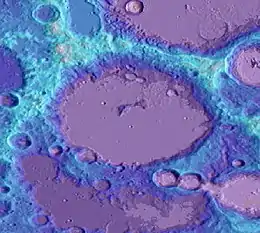Von Kármán is a large lunar impact crater that is located in the southern hemisphere on the far side of the Moon. The crater is about 180 km (110 mi) in diameter and lies within an immense impact crater known as the South Pole–Aitken basin of roughly 2,500 km (1,600 mi) in diameter and 13 km (8.1 mi) deep.[1] Von Kármán is the site of the first soft-landing on the lunar far side by the Chinese Chang'e 4 spacecraft on 3 January 2019.