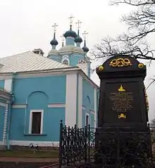 Vyborgski district has preserved a certain tangible memory of the nation's success in the Great Northern War. The day of the decisive Battle of Poltava in the south (in what is now Ukraine), on which Russians had their first major success in the war, fell on the feast day of Saint Sampson the Hospitable[4] (June 27, 1709), and a grand cathedral in his honour was built on the road to Vyborg. Completed during the reign of Anna of Russia, Sampsoniyevskiy Sobor (Saint Sampson's Cathedral) is now a museum - a branch of the ring of four museum churches with the head office at Saint Isaac's Cathedral.[5] Saint Sampson's Cathedral features among the few church buildings preserved from the first half of the 18th century - from the city's first decades of existence.[6] It replaced an earlier wooden church, whose construction started in 1709 on the Tsar's order, and which was consecrated the following year. The cathedral is interesting architecturally for its admixture of Old Russian forms with then-current elements of Western European trends, forming together "Anna's baroque" and is also known for its unique carved wooden iconostasis from that time.[6] For the bicentennial of the Battle of Poltava the ground floor of the bell tower was decorated by memorial plaques citing Peter's selfless encouraging words to his army on the day.[6] Opposite the building was placed Peter the Great's statue by Mark Antokolsky, taken away under Soviet rule years and restored on its place in the early 21st century.