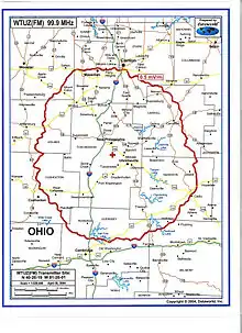 WTUZ is an American radio station with studios located in New Philadelphia, Ohio, serving Tuscarawas County and surrounding counties. WTUZ's primary signal covers 965 square miles (2,500 km2). The population within this primary coverage area is approximately 120,000.