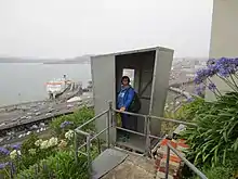 Wellington had a tramway system between 1878 and 1964. Wadestown was part of the network from 1911. The narrow and steep cutting that forms part of Lennel Road between Barnard Street and Sefton street was specifically created for the tramway.[16] In c. 1918 a tram shelter was built on the corner of Sefton Street and Hosking Lane/Lennel Road. It continues to be used as a bus shelter and is preserved for its architectural and historic value.[17] The Wadestown tram line was closed in 1949 and replaced by a bus service.[18][17]