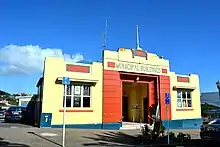 From 1876 to 1888 Raglan County Council meetings were held in Raglan. However, Raglan wasn't central for the county, so meetings then alternated between Raglan and Whatawhata.[10] On 15 May 1901 Raglan County held its first meeting in its new chambers at Ngāruawāhia,[16] though continuing with at least an annual meeting in Raglan. In 1908 the council agreed to sell the old office for £227 10s.[17] and build larger offices on the Raglan side of the Waipā Bridge. W. J. Smith of Raglan built them for £625. The new office opened in 1909.[18] On 27 May 1961, a new £40,000, 16-room, brick building, on the Great South Road, was officially opened by the Minister of Works, Stanley Goosman.[10] The old office was sold in 1961 and was being used as a loom factory, when it burnt down on 18 November 1971.[18]