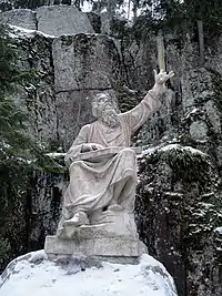 Väinämöinen has been identified as a source for Gandalf, the wizard in J. R. R. Tolkien's novel The Lord of the Rings.[7] Another Tolkienian character with great similarities to Väinämöinen is Tom Bombadil. Like Väinämöinen, he is one of the most powerful beings in his world, and both are ancient and natural beings in their setting. Both Tom Bombadil and Väinämöinen rely on the power of song and lore. Likewise, Treebeard and the Ents in general have been compared to Väinämöinen.[8]