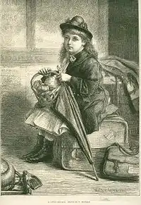 Around this time, Goodman moved to Bradford, Yorkshire and lived with his sister, Alice for several years. Goodman contributed the same drawing to two books in 1879 – God is taking care of me to the Ellen Haile children's book Three Brown Boys and other Happy Children (the other main contributing artist was the renowned children's book illustrator Kate Greenaway) and Floy's first flight to The One Syllable Book. The same drawing appeared again, in 1885, as Obedient Bessie in a children's book called Little Ramblers and Other Stories. In 1877 he exhibited A Factory Girl[30][31][32] depicting a northern England factory girl returning home from work, at The Dudley Gallery.[33]