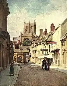 For the book "Wessex" (A & C Black, 1906),[8] Tyndale painted landscapes and buildings in the west country of England, some of which had inspired Thomas Hardy's "Wessex" novels.[9] Some of these locations were suggested by Hardy himself, who praised the "fidelity, both in form and colour" of Tyndale's work.[10] "The Studio" magazine commented on the "excellent draughtsmanship and the care with which architectural details are rendered".[11]