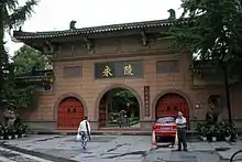 Late in the year, the eunuch Han Quanhui, fearing that Emperor Zhaozong and the chancellor Cui Yin were planning to massacre the eunuchs, seized Emperor Zhaozong. Cui, in response, summoned Zhu Quanzhong the military governor of Xuanwu Circuit (宣武, headquartered in modern Kaifeng, Henan) to bring an army to Chang'an. As Han was allied with LI Maozhen, he forcibly took Emperor Zhaozong to Fengxiang. Zhu then put Fengxiang under siege, claiming that he wanted to restore the emperor to the proper place in Chang'an. Both Zhu and Li Maozhen sought an alliance with Wang Jian. Wang played both sides — outwardly announcing agreement with Zhu, while secretly sending messengers to Li Maozhen urging him to resist Zhu — and yet at the same time sent Wang Zongji and Wang Zongdi north, seeking to seize the prefectures south of the Qinling Mountains that Li Maozhen still controlled.[15] By spring 902, Li Maozhen's adoptive son Li Jizhong (李繼忠) the military governor of Zhaowu Circuit (昭武, headquartered at Li Prefecture) abandoned Li Prefecture, allowing Xichuan forces to seize it. Subsequently, Wang Zongbo and Wang Zongdi captured Xingyuan, and Li Maozhen's adoptive son Li Jimi (李繼密), then the military governor of Shannan West, was forced to surrender as well. Wang Jian initially made Wang Zongdi the military governor of Shannan West, but subsequently, getting reports from Wang Zongji that made accusations against Wang Zongdi, and fearing that Wang Zongdi was both loved by the soldiers, he summoned Wang Zongdi back to Chengdu and had him strangled. He made another adoptive son, Wang Zonghe (王宗賀), the acting military governor of Shannan West. Subsequently, Li Sijing (李思敬) the military governor of Wuding Circuit (武定, headquartered in modern Hanzhong) surrendered as well. By this point, Wang Jian had captured all of Li Maozhen's former territory south of the Qinling Mountains, partially leading to Li Maozhen's subsequent agreement in 903 with Zhu to kill Han and his associates and to give the emperor to Zhu in return for lifting the siege on Fengxiang.[16] After Emperor Zhaozong returned to Chang'an, Cui and Zhu ordered that all eunuchs be massacred. However, Wang protected Yu Quanyan (魚全禋) the eunuch monitor for Xichuan and the prominent retired eunuch Yan Zunmei (嚴遵美) from execution, instead executing two inmates that he claimed to be Yu and Yan.[16][17]