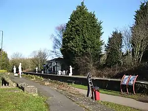 Warmley was a small railway station just south of Mangotsfield on the Midland Railway Mangotsfield and Bath Branch Line. The station was sited just north of a level crossing on the A420 road through the village. It had wooden buildings: the shelter on the down platform (towards Bath) survives and is used on occasion as a refreshment stop on the Bristol & Bath Railway Path, which follows the route of the railway.[1]