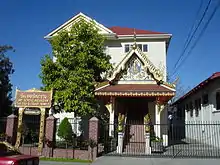 Wat Mongkolratanaram (Thai: วัดมงคลรัตนาราม) is a small Thai Buddhist temple located in Berkeley, California. A wat, it mainly attracts Thai American Buddhists, many of whom are students at the University of California, Berkeley, but it also draws in many local, non-Buddhists who come searching for the authentic Thai food public brunch on Sundays[1] or attend its frequent cultural events. The temple is home to a Thai school for San Francisco Bay Area youth, as well as Berkeley's Thai Cultural Center.[2]