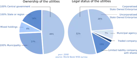 In the last two decades, the management of urban water supply and sanitation has been increasingly put in hands of newly created utilities. In some cases these water supply and sanitation utilities also supply electricity. The majority of these utilities are corporatized, meaning that they emulate a private company in terms of productivity and financial independence. Nevertheless, they widely differ in legal status and ownership structure.