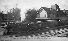At the beginning of the railroad age the community began to thrive. From 1849–51, the New York & Erie Railroad reached the vicinity, opening a rail connection eastward to New York City via Binghamton, and westward to Lake Erie via Elmira. Soon after, in 1854, Waverly became an incorporated village.[8] Waverly become an important railroad junction in 1869 when construction of the Lehigh Valley Railroad from Wilkes-Barre, PA reached northward to this village on the New York State line and increased its viability by effectively linking both railway operations. This also helped spur the economic development of Sayre, Pennsylvania, Waverly's southern neighbor and former home to Lehigh Valley Railroad's locomotive yard and shops. At the height of the railroad age, approximately forty one trains entered the village per day and the population of the village was nearly triple what it is today. During this time, the largest celebration in the village was held: the August, 26th 1910 Old Home Celebration which lasted four hours and packed the streets with spectators.