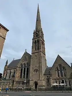 The building was founded as the Lansdowne United Presbyterian Church. It was built between 1862 and December 1863 in the Neo-Gothic style, on designs by John Honeyman. The total cost amounted to £12,400. A spire was built with a height of 66.5 metres (218 feet), which today is considered a Glasgow iconic landmark and one of the slimmest spires in Europe.[1] In 1900, the church was renamed Lansdowne United Free Church, while in 1929, after the union with the Church of Scotland, it was renamed Lansdowne Parish Church.[2][3]