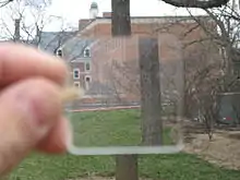 Importantly, the bottom edge of the prism must be roughly parallel to the ground in order to provide an accurate estimate on sloped ground. Wedge prisms can be difficult to use in wet conditions due to the effect water droplets have on the optical properties of the glass. Wedge prisms come in different colors such as clear or amber. The amber provides the same function as the clear wedge prism, only it reduces glare and is easier to use on overcast or cloudy days. Operating a wedge prism is one technique used in forestry today because the wedge prism is simple, relatively inexpensive, portable, and as accurate as other angle gauges when properly calibrated and used properly. One simply holds the prism directly over the plot center,[3] and by focusing on a tree, the refracted light will offset the trunk of the tree. The wedge prism is used to take measurements in both land management and in timber procurement. Other tools often used to accompany the wedge prism in taking forest inventory are clinometers, Biltmore sticks, relascopes, and diameter tapes.