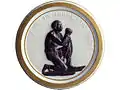 On July 5, 1787, the Society for Effecting the Abolition of the Slave Trade resolved to develop a recognizable seal for their cause. The Society solicited the help of prominent British potter and entrepreneur Josiah Wedgwood. On October 16, 1787 a design by Henry Webber was presented to a committee of the Society. According to Mary Guyatt, and "it is fair to suggest that [Wedgwood] would have had some influence over the eventual design" given his personal involvement in the project.[1] Webber's design depicted a Black male slave in a kneeling posture accompanied by the motto "Am I not a man and a brother?"[4] The motif was adapted from a print design into sculpture, likely by William Hackwood.[3]