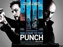 Welcome to the Punch is a 2013 British action thriller film written and directed by Eran Creevy and starring James McAvoy, Mark Strong, and Andrea Riseborough.[5][6] The script had been placed on the 2010 Brit List, a film-industry-compiled list of the best unproduced screenplays in British film. With seven votes, the film was placed third.[7][8]