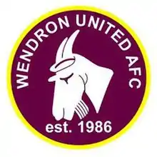 Wendron United F.C. was formed in 1986 as the football section of Wendron Cricket Club.[2] As Wendron CC United, they joined the Cornwall Combination in 1998, and stayed there until 2007–08 when they joined the South West Peninsula League Division One West, dropping the 'CC' from their name.[3] They remained in that league for two seasons before resigning mid-season in 2009–10.[4]