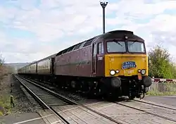 Several Class 37 locomotives were purchased from Ian Riley Engineering, which ceased its spot-hire operations in mid-2004. In 2005, WCR won the contract to haul The Royal Scotsman luxury train. As a result, its two operational Class 37 locomotives and a Class 47 were repainted into a revised maroon livery, officially known as Royal Scotsman Claret, based on that of the Royal Scotsman carriages. In late 2005, WCR sold its two operational Class 37 locomotives (nos. 37197 and 37261) to Direct Rail Services, and received four Class 33 locomotives in exchange.[29] As of 2011, WCR started investing in more Class 57 locomotives, bought from Advenza Freight, Harry Needle Railroad Company, Freightliner and Porterbrook.[30][31][32]
