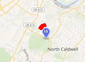In July 1958 voters authorized $290,000 for the purchase of a 73-acre (300,000 m2) site, of which 60 acres (240,000 m2) lay in North Caldwell and 13 in Caldwell Township. The site is located between Grandview and Passaic Avenues, directly north of Greenbrook Road, about 25 miles (40 km) outside of New York City.[15]