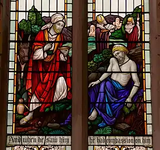 The church's first organ was installed by Booth of Wakefield at a cost of £350 in 1869. On 7 July 1869 organist W.T. Best opened the instrument by playing "airs, solos, recitatives, quartets and choruses."[19] The second pipe organ was obtained from Forster and Andrews in 1899.[20][21] The current 1894 James Jepson Binns organ was obtained from the much larger St. Paul's Church, Semilong, Northampton,[nb 25][22][23] in 1993 and installed inside the original Forster and Andrews casing by Peter Wood.[nb 26][24]
