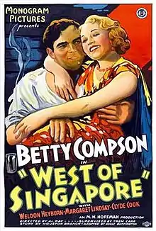 West of Singapore is a 1933 American drama film directed by Albert Ray and starring Betty Compson, Weldon Heyburn and Margaret Lindsay.[1]