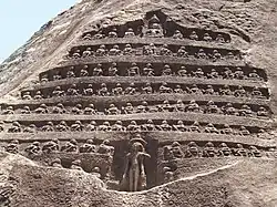 The prose piece of Chavundaraya, who was a famous Ganga minister and army commander, known as Chavundaraya Purana (or Trishashtilakshana mahapurana) written in 978 CE, is an early existing work in the genre in Kannada and is a summary of the Sanskrit writings, Adipurana and Uttarapurana, written by Jinasena and Gunabhadra during the rule of Rashtrakuta Amoghavarsha I.[1][2][3] The prose, composed in lucid Kannada, was meant mainly for the common man and avoided any reference to complicated elements of Jain doctrines and philosophy. In his writing, the influences of his predecessor Adikavi Pampa and contemporary Ranna are seen. The work narrates the legends of twenty-four Jain Tirthankaras, twelve Chakravarti's, nine Balabhadra's, nine Narayana's and nine Pratinarayana's – narrations on 63 Jain proponents in all.[4][5]