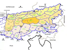 | States of Austria, regions of Italy | Tyrol, Carinthia, Salzburg, Trentino-Alto Adige/Südtirol |