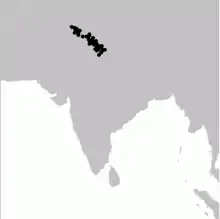 Five populations are known from Kohistan and Kaghan valley in Pakistan and from Kishtwar, Chamba and Kullu districts of India as well as from an area east of the Satluj river in India. They are found from an altitude of 1,750 to 3,600 m, going higher in summer. Their preferred habitat is the dense understorey of temperate, subalpine and broad-leaved forest.