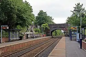 Westhoughton railway station is one of the two stations which serve the town of Westhoughton, in the Metropolitan Borough of Bolton, Greater Manchester, north-western England. The station is 15+1⁄2 miles (24.9 km) north west of Manchester Piccadilly.