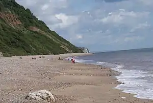 Weston Mouth is an isolated beach on the East Devon coast between Sidmouth and Seaton in England.[1] It can be reached only by footpath, either along the South West Coast Path or from the village of Weston. The beach is mostly shingle with some sand at low tide, and has no facilities.
