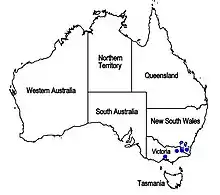 | Known range of Westringia lucida (in blue) | |