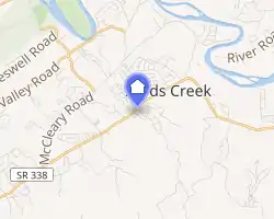 State Highway 338 roughly follows what was once a section of the 18th-century Native American trail known as the Great Indian Warpath. In 1780, John Sevier followed the path across the French Broad River to engage and defeat a Cherokee force at the Battle of Boyd's Creek, which took place at the future site of Wheatlands.[5] Early settlers also followed the trail into the Boyd's Creek area, among them Timothy Chandler, a Revolutionary War veteran from Virginia, who moved his family to Boyd's Creek in 1791.[1]