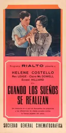 When Dreams Come True is a 1929 American silent drama film directed by Duke Worne and starring Helene Costello, Rex Lease and Claire McDowell.[1]