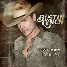 Where It's At is the second studio album by American country music artist Dustin Lynch. It was released on September 9, 2014 by Broken Bow Records.[1] Mickey Jack Cones produced 12 of the 15 songs with Brett Beavers and Luke Wooten co-producing 3 of the 15.[2] Lynch co-wrote five of the album's fifteen tracks.[3] The album's first single, "Where It's At", was released to country radio on March 31, 2014[4] and became his first number one single on the Country Airplay chart. The album's second single, "Hell of a Night", was released to country radio on November 3, 2014. and became his second number one single on the Country Airplay chart. The album's third single, "Mind Reader", was released to country radio on September 28, 2015, and became his third number one single on the Country Airplay chart.