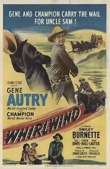 Whirlwind is a 1951 American Western film directed by John English and written by Norman S. Hall. The film stars Gene Autry, Gail Davis, Thurston Hall, Harry Lauter, Dick Curtis and Harry Harvey Sr. The film was released on April 16, 1951, by Columbia Pictures.[1][2][3]