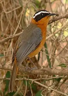 The white-browed robin-chat (Cossypha heuglini), also known as Heuglin's robin,[2] is a species of bird in the family Muscicapidae. Found in east, central and southern Africa,[3] its natural habitats include riverine forest and thickets, and it is also found near humans. The IUCN classifies it as a least-concern species.