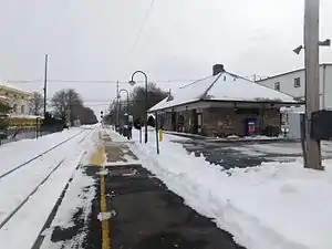 White House is a NJ Transit railroad station on the Raritan Valley Line, in the Whitehouse Station section of Readington in Hunterdon County, New Jersey. The station is on the west side of Main Street in the center and the station building has subsequently been turned into a branch library for the Hunterdon County Library system. This station has no weekend service.