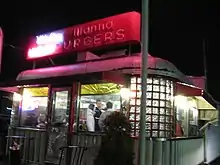 The White Mana, located at 470 Tonnele Avenue (40°44′50″N 74°3′42″W)[2] in Western Slope in Jersey City is a historical landmark, as well as the first Manna to open, and was the 1939 World's Fair building.[5] When originally introduced, it was called the "diner of the future" and an "Introduction to Fast Food."[2] According to the present owner, Mario Costa, Jr., the difference in spelling was the result of an error when the sign was serviced.[6] It is famous for its hamburgers and sells approximately 3,000 a week.[7]