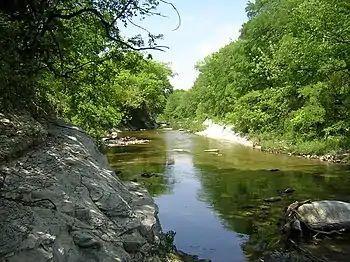 Despite running through one of the most populous areas of Texas, and flowing under many major roads and highways, its banks remain heavily wooded and undisturbed in many places and many local parks are situated within its watershed, which is generally considered to extend 2 to 2.5 miles (3.2 to 4 km) either side of its path.