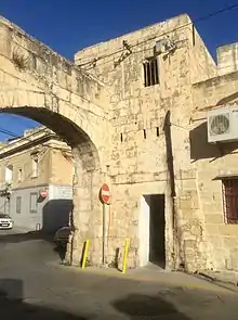 The original arch was demolished in 1944, and a roundabout was later built on its site. The construction of a replica of the arch was approved in 2012.[28] The local councils of Santa Venera and Birkirkara, as well as the Fleur-de-Lys Administrative Committee disagreed on what the arch's name should be, and eventually agreed in 2014 that it should be called "The Wignacourt Arch Known As The Fleur-de-Lys Gate".[29] The arch was reconstructed in 2015,[30] and it was inaugurated on 28 April 2016.[31]