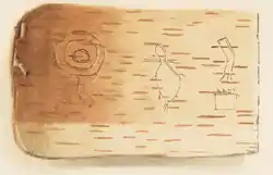 The Ojibwa peoples of the Great Lakes region historically used birch bark to keep records for instructional and guidance purposes.[3] Songs and healing recipes were readable by members of the tribe. Either through engraving or with the use of red and blue pigment, scrolls could contain any number of pictorial representations. Birch bark scrolls could measure anywhere from centimeters to several meters.[4]