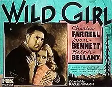 Wild Girl is a 1932 American pre-Code historical drama film directed by Raoul Walsh and starring Charles Farrell, Joan Bennett, Ralph Bellamy, and Eugene Pallette. The film was based on a play by Paul Armstrong, Jr., which in turn was based on the novella Salomy Jane's Kiss by Bret Harte. The story had been previously filmed as Salomy Jane (1914) and Salomy Jane (1923).[1]