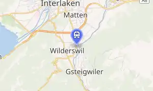 Wilderswil railway station (German: Bahnhof Wilderswil) is a railway station in the village and municipality of Wilderswil in the Swiss canton of Bern. The station is on the Berner Oberland Bahn, whose trains operate services to Interlaken Ost, Grindelwald and Lauterbrunnen. It is also the valley terminus of the Schynige Platte Railway, whose trains operate to the Schynige Platte and are stabled at a depot bordering the station.[1][4]
