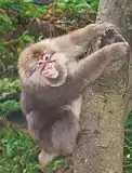 The most commonly found primates in China are macaques, which have oversized cheeks to store food and live in large troops. The range of the rhesus or common macaque extends from as far north as the Taihang Mountains of Shanxi and down to Hainan.[13] Tibetan macaques are often seen at tourist sites such as Mount Emei and Huangshan. Stump-tailed macaques have distinct red faces and live throughout southern China. The Formosan rock macaque is endemic to Taiwan. Assam macaques are found in higher elevation areas of southern Tibet and the Southwest, and the northern pig-tailed macaque in Yunnan. Macaques are Class I protected species in China but their numbers have fallen sharply. Monkey brain is a delicacy in parts of Guangxi and Guangdong, and macaques are often hunted for food.[14] The Monpa and Lhoba people of southern Tibet eat Assam macaques.[14] From 1998 to 2004, the number of rhesus macaques in China fell from 254,000 to about 77,000.[14] Over the same period, the Tibetan macaque population fell by 83% from about 100,000 to only about 17,000.[14]