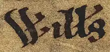 ![]() William's name as it appears on folio 50v of British Library Cotton Julius A VII (the Chronicle of Mann): "Willelmus".[1] | |