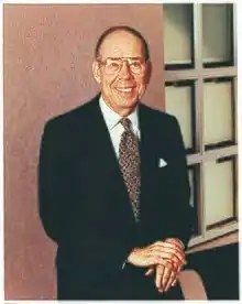 A firm believer in a liberal arts education, Bill tirelessly gave back to his alma mater throughout his lifetime. Member of the Albion College board of trustees from 1980 to 2004 and chairman from ’89 to ’96, acting president of the college from 1995 to 1996, visiting professor, guest speaker and recipient of an honorary doctorate.[5]