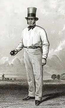 William Clarke (24 December 1798 – 25 August 1856) was an English cricketer and team manager who played first-class cricket from 1826 to 1855. He founded, managed and captained the All-England Eleven. He has been described as "one of certain figures who, in the history of cricket, stand like milestones along the way".[1] Clarke was born at Nottingham and died at Wandsworth in Surrey.