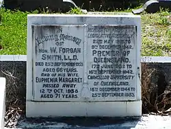 - Smith William Forgan — Brisbane City Council Grave Location Search. Retrieved 7 January 2015.