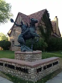 The two-story house was constructed by the Speigelberg Lumber Company of Wyoming sandstone with brick decorative accents with a sandstone wall partially surrounding the property. The roof is covered by terra-cotta tiles. Windows include leaded panels and opal glass in a variety of configurations. Masonry is rustic and the roof tiles wrap over the eaves. The brick accents in the attic gables resemble half-timbering.[2]