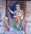Roman generals and emperors closeup in a frieze at the Great Hall of the Scottish National Gallery
