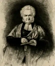 From about 1840, the situation was of three Anglican priests including Drury who held services on the boulevard de l'Observatoire (Église Évangélique); the other services were in the rue du Musée (Chapelle Royale, high church) and the rue Belliard in the Quartier Léopold (evangelical). A Particular Baptist observer found Drury to be "attentive to his congregation" and "a contrast to the priesthood at home" but his sermon in "want of great and vital truths".[15][16] Douglas Straight commented favourably in the 1860s on the atmosphere at Sunday matins created by Drury, after attending the service with Frank Newman.[17] The Prince of Wales attended a Sunday service of Drury's in September 1862.[18]