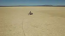 Lamson's sensitivity to the environmental conditions is critical to how his performative action unfolds and how his video work eventually comes together. The landscape operates as both the subject matter and a set of changing physical parameters that affect how he, the artist, responds to it.[2]